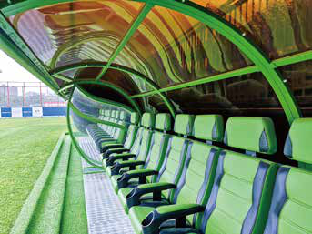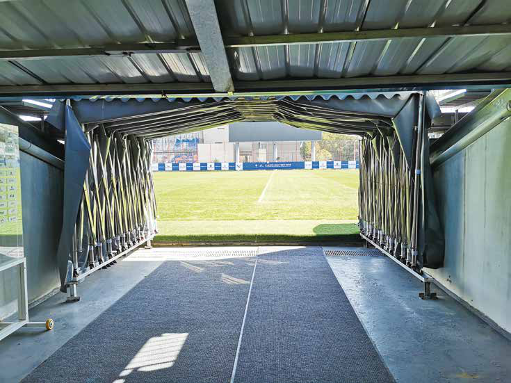 球员通道和伸缩雨棚:能够很好地阻止高空坠物的危害,保障球员进出场安全,自重较轻,方便移动。