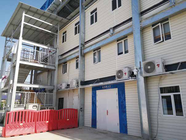 疏散楼梯:楼梯全部采用标准框架式并现场组装,由框架内部进入看台,四周护栏及遮挡保障安全。