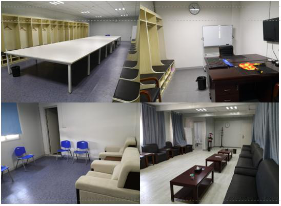 底部功能房是大型金属看台配备的高端功能系统,充分利用大型金属看台底部空间使内部使用空间最大化,每个房间中间有专用的连接件,使空间连接起来,自由拓展面积,功能房立柱和看台立柱共用,且通过结构计算,整体结构合理,满足荷载要求。链接件为优质钢材或铝材,表面处理为喷粉和阳极氧化处理,满足防腐效果,且完全可回收利用。墙面采用复合型保温外墙,满足墙体与保温、装饰一体化。屋面用结构层防水保温屋面,满足屋面与节能,防水,装饰一体化。底面采用结构层,保温防潮底面。